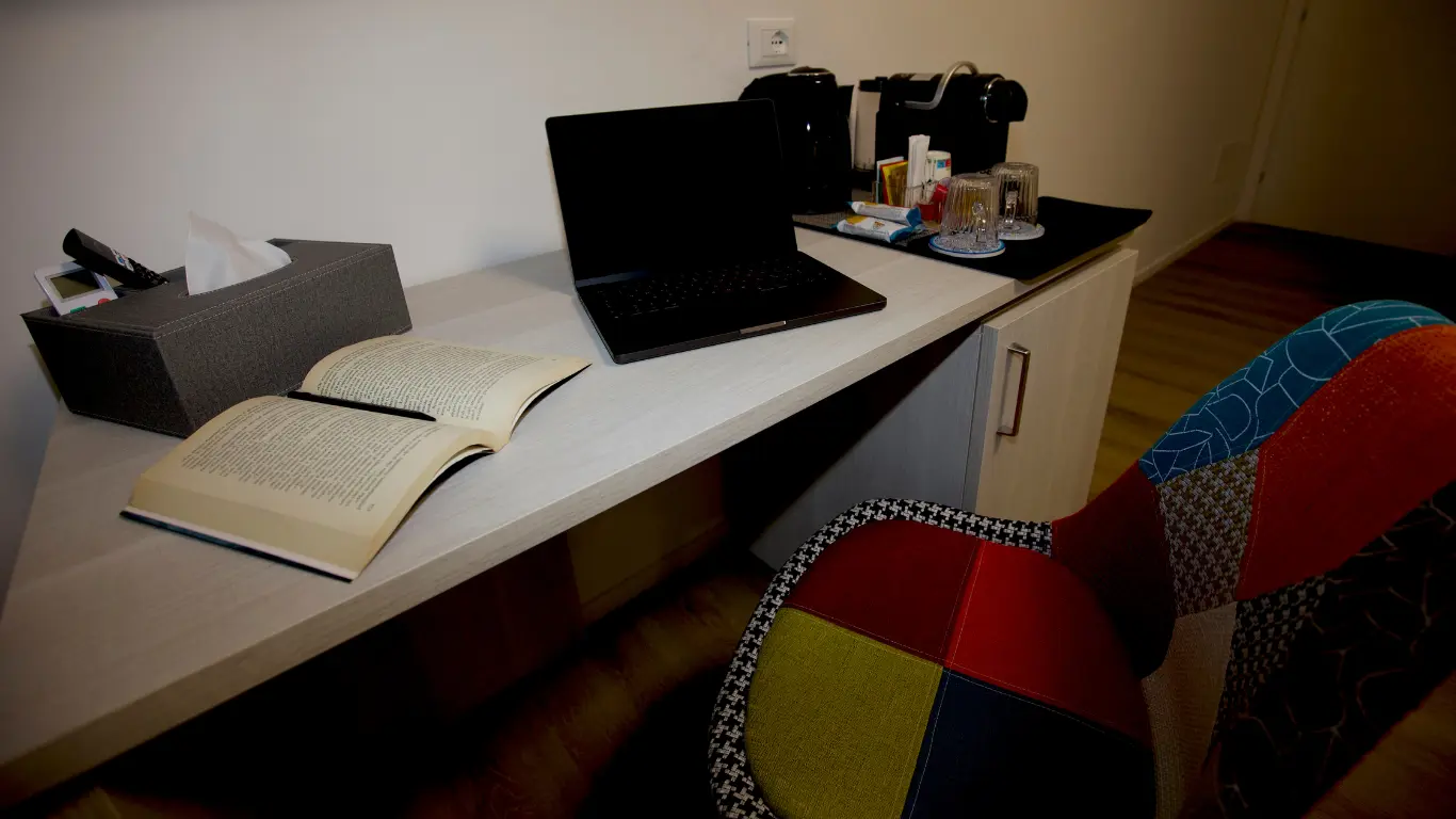 La luminosa finestra riempie lo spazio di luce naturale, rendendo l’ambiente arioso e accogliente fin dal primo sguardo.